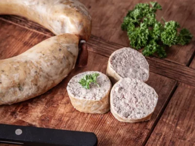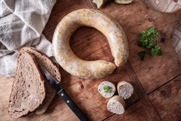 Schweinefleisch 53%, Schweineleber 22%, Speck, Trinkwasser, Speisesalz, Zwiebeln, Majoran, Gewürze, Buchenrauch