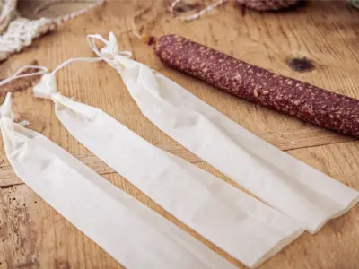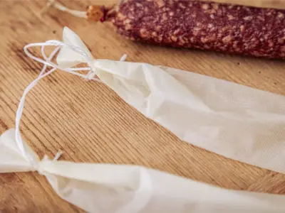 Hukki H 45/30 V-Ware – stabile, hochwertige Hülle zur Herstellung von Rohwürsten, geräuchert oder luftgetrocknet. Besonders geeignet für Salami und ähnliche Wurstsorten mit gleichmäßiger Form, feiner Oberfläche und optimalem Reifungsverhalten.