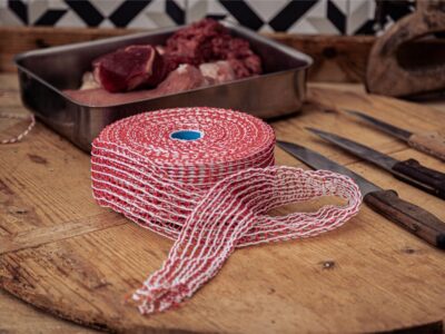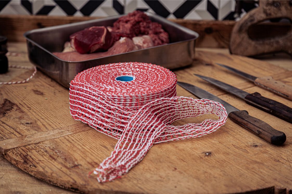 Lachsschinken-Netz – 16 Maschen, 1 Stück. Ideal zum Einziehen von Lachsschinken oder Fleischstücken zum Räuchern. Passend für Einfüllrohre mit 125 mm Durchmesser. Elastisch, formstabil und hitzebeständig – sorgt für gleichmäßige Form und perfekte Räuchergebnisse.