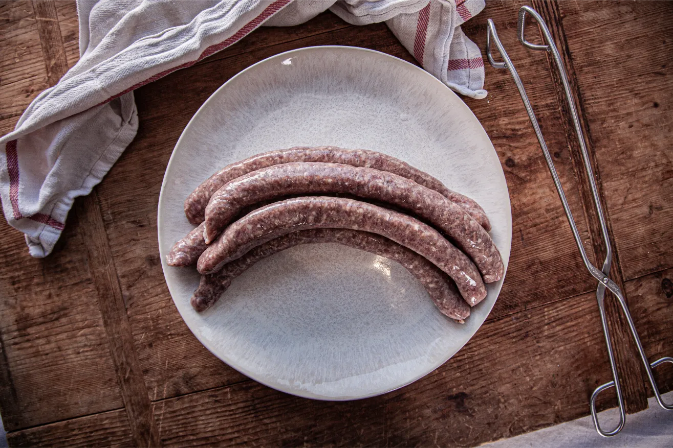 Mit feiner Butter, ausgewählten Gewürzen und einer abgerundeten Würze aus Mais und Raps veredelt, entfalten sie ihr volles Aroma beim Grillen oder Braten. Im natürlichen Schafsdarm – für ehrlichen Biss und authentischen Genuss.