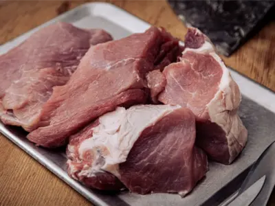 Hochwertiges, grob entsehntes Sauenfleisch mit einem Magerfleisch-Fett-Verhältnis von ca. 90 % Magerfleisch zu 10 % Fettanteil. Das Fleisch stammt aus ausgewachsenen Sauen und überzeugt durch seine kräftige Struktur, dunkle Farbe und ausgeprägte Aromabildung. Ideal geeignet für aromastarke Rohwurstsorten, die eine feste Konsistenz und gute Reifefähigkeit erfordern.