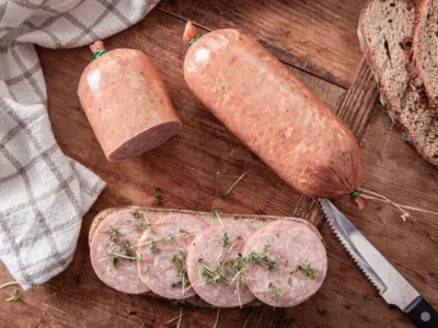 Anders als ihr Name vermuten lässt, ist die Kochsalami keine Rohwurst, sondern eine recht herzhaft gewürzte, grobe Brühwurst, deren mittelgrobe Körnung allerdings an das Schnittbild der Salami erinnert.